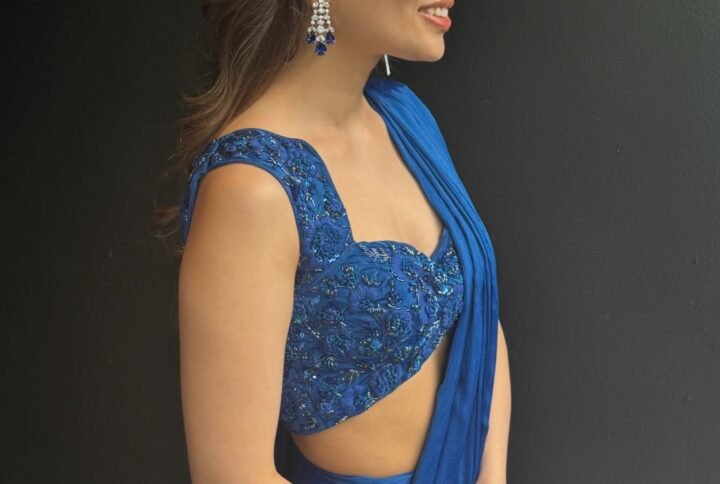 A Classic sky blue soft denim vest with delicate thread cutwork embroidery can be styled with the cloud skort or in multiple other ways